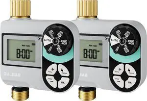 Brass Sprinkler Timer 2 Pack, Programmable Water Hose Timer for Garden Hose Faucet with Waterproof HD Screen, Rain Delay/Manual/Automatic Irrigation Watering System for Garden, Lawn, Yard
