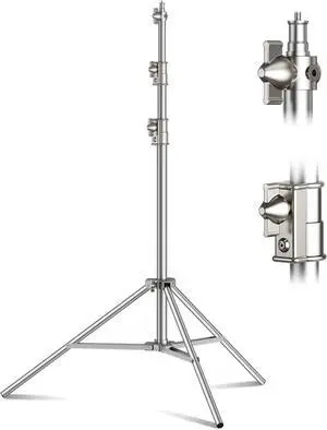 9.2 FT Stainless Steel Photography Stand, Heavy Duty Tripod With 1/4" to 3/8" Screw Adapter for Strobe, LED Video Light, Ring Light, Monolight, Softbox