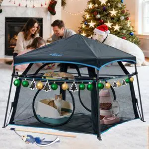 PETSFIT 45.5" Dog Playpen Indoor/Outdoor-Jump-Proof 28.5" Height with Removable Waterproof Mat & Zippered Roof | RV, Camping, Travel Dog Pen | Whelping & Cat Observation Space(45.5"L x 45.5"W x 28.5H)