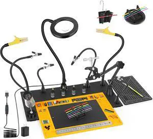 Helping Hands Soldering Station with Heavy-Duty Steel Base, Non-Slip Silicone Pad, 10+ Magnetic Accessories Kit, 10X 5X Magnifying Lamp, Third Hand Soldering Tool for Craft PCB Jewelry Making Modeling