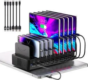 120W Charging Station for Multiple Devices, 10-Ports USB Charging Docking Organizer with Cables, Multi USB Charging Station Compatible with iPad, Tablet, Kindle, Airpods and Cell Phone