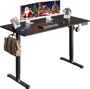 Electric Standing Desk Adjustable - 60x28 Inch Sit Stand Desk with 1 Inch Thick Tabletop, Double Beam Frame, 3 Memory Height Adjustment, Cable Management for Home Office