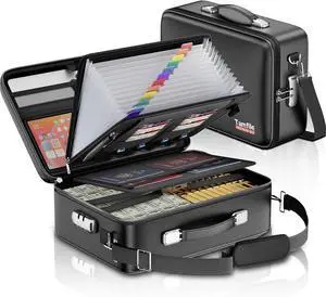 Fireproof File Organizer with Lock, Hard-Shell Case Fireproof Document Box with 13 Pocket Accordion File Folder, Portable Home Office Travel Safe Storage for Important Documents Laptop Black