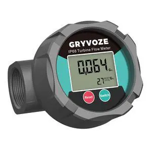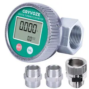 1 Inch Digital Water and Fuel Flow Meter Kit - with 360° Swivel Connector and Two Male Connectors - IP68 Waterproof and EMI Resistant, 2.4-26.4 GPM Inline NPT Flowmeter