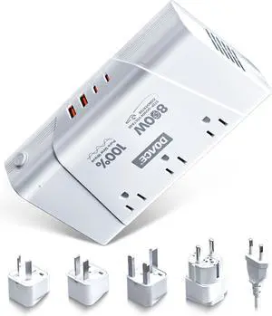 DOACE 220V to 110V Converter, 800W Voltage Converter US to Europe for Hair Straightener/Curler/Phone, Power Converter with 2 USB C & 2 USB A Ports, European Travel Plug Adapter UK, US, AU, EU, White
