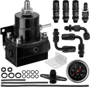 Adjustable EFI Fuel Pressure Regulator Kit with Bypass Return, 0-100 PSI Gauge, 6AN Fittings and PTFE Braided Hose Compatible with Gasoline, E85, Ethanol & Methanol Fuels
