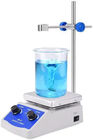 Magnetic Stirrer Hot Plate Mixer 1000ml Stirring Capacity 5 x 5 inch Max 520°F Hotplate and 100-2000 RPM Stirrer, Stirring Bar & Support Stand Included