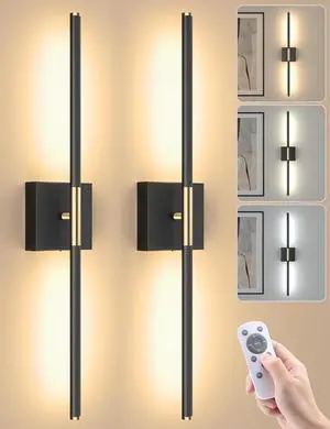 7800mAh Battery Operated Wall Sconces Set of Two, Rechargeable Wall Sconces with Remote, 360° Rotatable Battery Wall Sconce Decor, 27.6'' Wireless Wall Lights for Bedroom, Living Room(Black Gold)