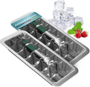 Stainless Steel Polished Set 2-Pack Ice Cube Tray for freezer Ice Cube Tray with Lever Insert |Easy Release with cold-insulated comfort grip | Food-Safe & Durable Ice Cube Maker