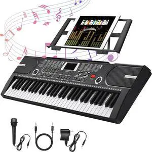 61 key piano keyboard - Electric Keyboard Piano with Microphone, Music Stand, Built-In Speakers - Portable Digital Piano for Beginners, Ideal Gift & Learning