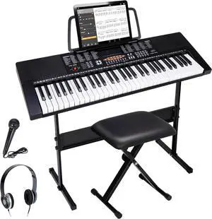 61-Key Portable Electric Keyboard Piano with Built In Speakers, LED Screen, Headphones, Microphone, Piano Stand, Music Sheet Stand and Stool