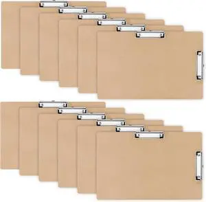 12 Pcs 11x17 Clipboard Wooden Lap Board with Low Profile Clip Brown Double Landscape Clip Hardboard Drawing Board Landscape Horizontal Large Clipboard for Desk Paper Sketching Art Supplies
