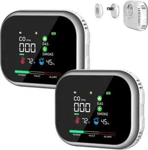 6 in 1 Carbon Monoxide Detector Plug in - Portable Gas & Smoke Alarm with Magnetic Mount for RV, Home & Camping - Digital Display, Battery Backup, Combustible Gas Leak Detection (2 Pack)