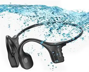 IPX8 Waterproof Bone Conduction Headphones Swimming Underwater Bluetooth Headsets with MP3 Player Open Ear Headsets with Mic Wireless Earphones Built-in 32GB Memory for Running Cycling Gym Workouts