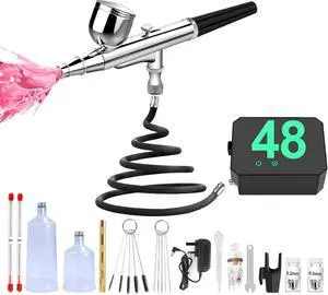 Airbrush Kit with Compressor - 48PSI High Pressure, Non-Clogging Air Brush Set, 6000 mAh Extra Long Standby, Ideal for Painting, Modeling, Cake Decorating, Pastry, Makeup and Nail Art