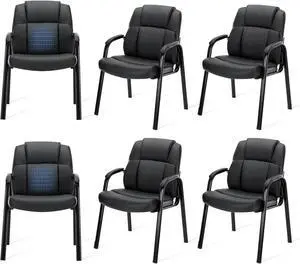 OLIXIS Waiting Room Chairs Set of 6, Leather Office Desk Reception Guest Stationary Side Chair with Padded Arms for Home Conference Lobby Area Meeting Church Medical Clinic Elderly Student