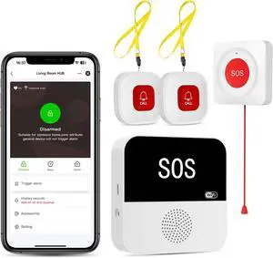 WiFi Caregiver Wireless Call Button System - 2 Lanyard + 1 Pull Cord Emergency Button, No Monthly Fee APP Alert, Custom Names/Tones, Elderly Safety for Mobile, Bathroom & Bedside Care