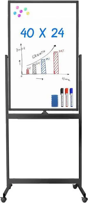 Magnetic Mobile White Board, 40 x 24 Double Sided Dry Erase Board Rolling Whiteboard, Aluminum Frame Standing Whiteboard on Wheels for Home Office Classroom (40 x 24 Black)