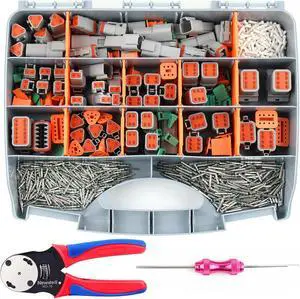 Newdeli 338 pcs Deustch Connector Kit 2 3 4 6 8 12 Pin Connectors with Deutsch Crimping Tool and DT Connector Removal Tool Size 16 Solid Terminal Contacts(14-20AWG)