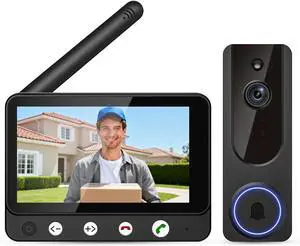 Wireless Doorbell Camera Video Intercom System with 4.5" Indoor Visual Base Station, Two Way Talk, Smart AI Motion Detection, Night Vision, Cloud Storage.