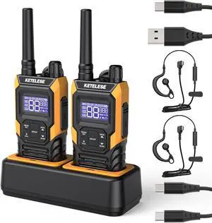 T3F IP67 Waterproof Walkie Talkies, Rugged Two Way Radio with Earpiece, Triple Proof, Three Charging Options, FRS 2 Way Radio 22 Channels, NOAA, VOX (6 Pack), Black/Yellow