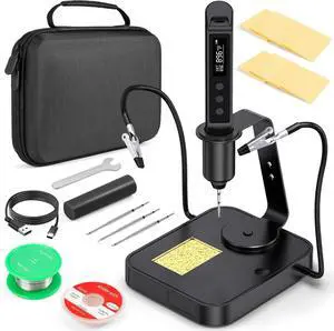 Soldering Iron Kit, Cordless Soldering Gun with 2 Helping Hands, 2s Fast Heating 356-896 OLED Solder Kit, Auto Sleep, Includes 360° Swivel Stand, C210 Tips, Wire, Wick, Sponges, Wrench, Black