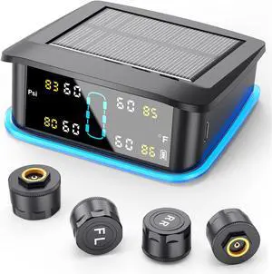 Tire Pressure Monitoring System, Real-time Solar Wireless TPMS with 4 Tire Pressure Sensor, Digital LCD Display, Auto Security Alarm for RV SUV MPV Truck Sedan