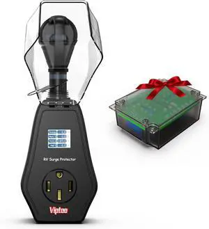 RV Surge Protector 50 Amp with Extra Replacement Module, 1.77" Smart LED Display, 12000 Joules Circuit Analyzer, Waterproof Design with Oversized Cover for Camper & Trailer Power Plug