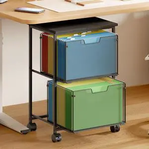 Letter/Legal Rolling File Cart with 2 Storage Drawers, Under Desk Storage, Vertical Filing Cabinet for Home Office, Hanging File Folders Organizer, Mobile Utility Cart Printer Stand, Black