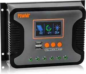 60A PWM Solar Charge Controller, 12V 24V 36V 48V Auto, LCD Display and Dual USB Output, Fit for AGM, Gel, FLD, Lead-Acid and Lithium BatteryUpdate Version