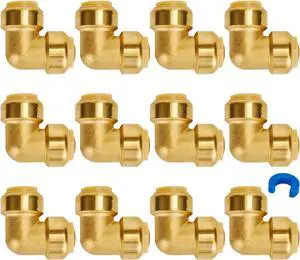 12-Pack PEX Elbow, 3/4-Inch Push Fit 90-Degree Plumbing Fitting Pipe Connector with Disconnect Clip, Push-to-Connect, Copper, CPVC, No Lead Brass