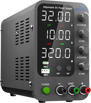 30V 10A Bench Power Supply with Encoder Coarse & Fine Adjustments Knob, Adjustable Switching Regulated lab Power Supply with 5V 3.6A USB & Type-C Quick-Charge