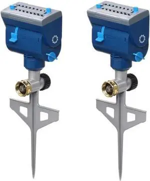 Oscillating Sprinkler with Metal Step Spike and Quick Connect Adapter Set, Control Watering Range, Width, and Flow Rate, Covers up to 4,069 sq.ft., AquaVive SR16 [2-Pack]