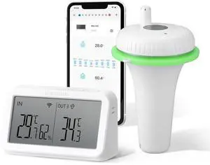 IBS-P02R Wireless Pool Thermometer Floating Easy Read with Digital Monitor, 295ft Remote Smart WiFi Gateway IBS-M2 | Water Temperature & Humidity | IPX7 for Swimming Pool, Hot Tub, Ice Bath
