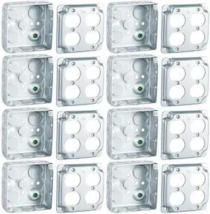 8 Set 4 x 4 Metal Electrical Box Outlet Box Duplex Receptacle Ten 1/2" Knockouts 1-1/2" Deep 21.0 Cu. in. Capacity with Exposed Work Cover Grounding Wire and Screw Junction Boxes Galvanized