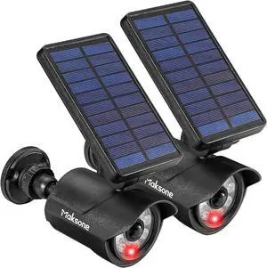 Solar Lights Motion Sensor Security Light METAL Finishing, Fake Camera Red Indicator Dummy Camera IP66 Waterproof Lamp Outdoor Landscape&Wall mount Highly Bright 2400mAh for garden yard 2 Pack