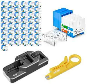 RJ45 Cat6 Keystone Jacks UL Listed 50-Pack, UTP Ethernet Keystone Jacks with Keystone Punch Down Stand Tool and Wire Stripper Cutter, Blue