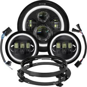 7 Inch LED Motorcycle Headlight 4.5" Fog Passing Light For Harley Street Glide Road King Road King Tri Tour Softail Deluxe Heritage Classic Fat Boy Models Black DRL Halo Ring Angel Eye