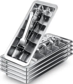 5 Pcs 18 Slot Stainless Steel Ice Cube Maker and Tray Ice Cube Tray for Bars Kitchens Levers Remove Cubes Easy Removal Metal Food Grade Freezer Molds for Food Juice Dishwasher Safe