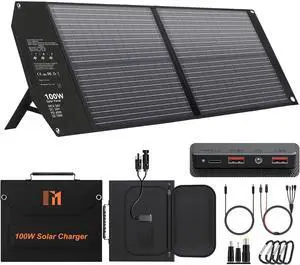 100W Portable Foldable Solar Panel Charger for Power Station Solar Generator with Kickstand 24V MC4 DC QC3.0 USB A PD3.0 PD65W USB C Output Fast Charging for Outdoor Camping RV Trip Off Grid Living