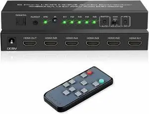 5 in 1 Out 4K@60Hz HDMI Switch Audio Extractor with Optical & 3.5mm Out, HDMI 2.0 Audio Splitter Support HDR 10, HDCP 2.2, 18Gbps, Dolby Vision Atmos, ARC, not eARC