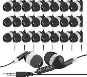 Bulk Earbuds 100 Pack | Wired in-Ear Earphones for Classroom, Students, Kids, and Libraries | Disposable Headphones with 3.5mm Jack, Perfect for Schools, Laptops, and Chromebooks, Black