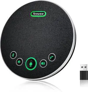 Tenveo Conference Speaker Microphone, Bluetooth/Dongle/USB Connectivity, 4 AI Noise Mics and 360° Sound Pickup,Compatible with Zoom, Teams, OBS, Supports 10-12 People for 8 Hours of Talk Time