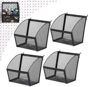 4 Pack Pegboard Baskets Metal Wire Storage Basket Hanging Wall Mount Bins Containers Accessories for Office Workshop Organizing Tools Stationery (Black,7.3 Inch)