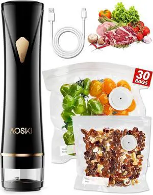 Compact Vacuum Sealer for Food: Powerful Compact Vacuum Sealer Machine with 30 PCS Vacuum Seal Bags, Cordless Food Storage Sealing Machine Portable for Chef, Home, Travel, Camping, Sous Vide