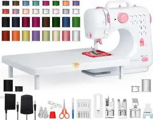 Compact Sewing Machine for Beginners 12 Stitch Settings, Factory Tested, Pre-Threaded, with Test Fabric, Adjustable Speed Pedal, LED Light, and 32 Thread Colors for Home Projects and Alterations