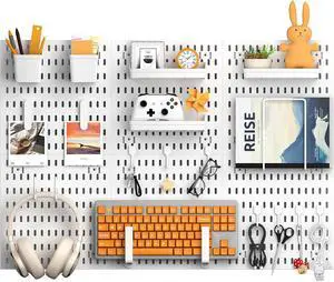 Peg Board, 24"x36" Pegboard Wall Organizer, Includes 6PCS White Peg Boards and Accessories, Plastic Peg Board Panels for Craft Room, Office, Kitchen, Gaming Room