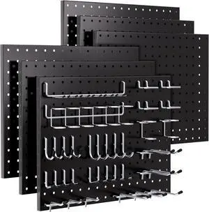 90PCS Pegboard Wall Organizer, 6 Pack Metal Peg Board Panels with 1/4" Pegboard Hooks Accessories Kit, Black Peg Board for Walls Home, Garage Tool Storage, Workbench Organization