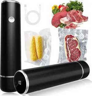 Powerful Handheld Vacuum Sealer Compact Food Saver Machine with 10 Reusable Bags, Portable Design for Meal Prep, Sous Vide & Long-Term Food StorageBlack
