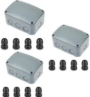 Outdoor Junction Box, IP66 3 Set Weatherproof Electrical Boxes with 20mm Cable Gland Kit, PVC/ABS Plastic Enclosure Box Universal Watertight 4.9 x 3.3 x 2.3 inch (125x86x62mm)